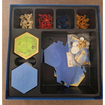 Hiánytalan, a dobozán látszik a használat de maga a játék nagyon jó állapotú.Nyomtatott magyar nyelvű játékszabállyal. 10 éves kortól,3-6 játékos részére.A Catan kiegészítő - Tengeri Utazó nem önálló játék, csak az eddig megjelent olyan Catan Telepesei kiadással kompatibilis, mely műanyagfigurákat tartalmaz.Letelepedtetek Catan szigetén, most már itt az ideje, hogy hajókat küldjetek ki a tengerre és felfedezzétek a környező szigeteket is! A hajók építéséhez fa és gyapjú kell, kalandozásaitok során pedig új nyersanyagra leltek, ami nem más, mint az arany! Milyen titkot rejt még a látóhatárt borító sűrű köd? Fedezzétek fel "Óceániát" és hajózzatok el "Egy új világ felé"!