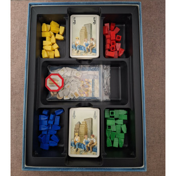 Hiánytalan,nagyon jó állapotú,nyomtatott magyar nyelvű játékszabállyal. 12 éves kortól, 2-4 játékos részére.A játék célja: A játékosok a lehető legtöbb győzelmi pontot próbálják elérni a magasba törő épületek ,és üzletek építése által.A játékosok a fordulójukban választanak egy akciót a 4 db lehetséges akció közül. Az "építési kártyáknak" az árverés fázisban lesz fontos szerepük. A játék végén pedig a legtöbb győzelmi pontot gyűjtő játékos megnyeri a játékot .