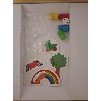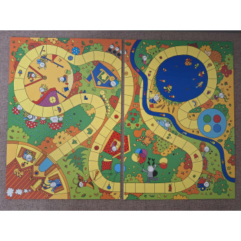 Hiánytalan, a táblája sajnos 2 darabban van,de ez nem befolyásolja a játékot, ezt leszámítva jó állapotú,magyar nyelvű játékszabállyal. 3 éves kortól,2-4 játékos részére.A játékban a gyerekek célja,elsőként eljutni az oviba.Ügyesnek kell ám lenni,mert az oda vezető út során számtalan csalafinta mező várja a játékosokat! Induljatok hát el az úton és megtudhatjátok,hogy milyen lecsúszni a szivárványcsúszdán.Találkozhattok Alfonzzal és Bogyóval,mérleghintázhattok Baltazárral és ne felejtsetek el elbújni a gomba kalapja alá,amikor elered az eső!