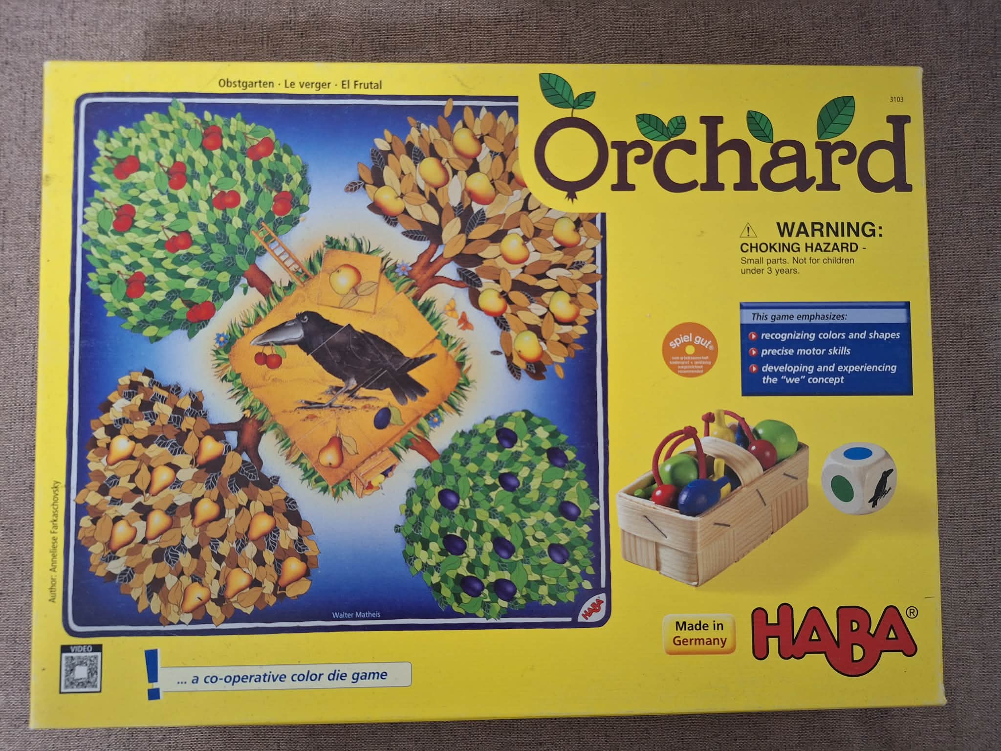 Hiánytalan, a doboza viseltes,és a tábla közepén látszik kicsit a használat,de ezt leszámítva jó állapotú,magyar nyelvű játékszabállyal.3 éves kortól,1-8 játékos részére.Kooperatív társasjáték 1-8 játékos részére 3–6 éves korig. A gyümölcsöskertben a fák telis-tele vannak gyümölcsökkel. Az alma, körte, cseresznye, szilva már mind megérett. Gyorsan le kell szedni őket, mert a ravasz holló csak arra vár, hogy elkapkodja az érett gyümölcsöket. A gyerekeknek meg kell próbálni leszedni a gyümölcsöket a fáról, még mielőtt a holló ellopná őket. Számlát adok róla .Még több termék a weboldalamon: https://jatekhalaszat.hu/ Személyesen előre egyeztetett időpontban és helyen a következő helyeken vehető át Xv kerület, Kerepes, Kistarcsa vagy tudom küldeni packetával,foxpostba, mpl automatába, postapontra vagy futárral.