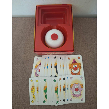Hiánytalan,a doboza kicsit viseltes de maga a játék jó állapotú,nyomtatott magyar nyelvű szabállyal.4 éves kortól,2-4 játékos részére.8 különböző színű bohóc nyüzsög a cirkuszi porondon.A legtöbb bohóc boldog,de néhány nagyon szomorú,mert elveszítették kalapjaikat.Csapj a csengőre gyorsan,de csak akkor,ha két egyforma vidám bohócot látsz.A leggyorsabb játékos elnyeri játékostársai felfordított lapjait.Az a játékos nyeri a játékot,aki a legtöbb kártyalapot gyűjtötte össze.