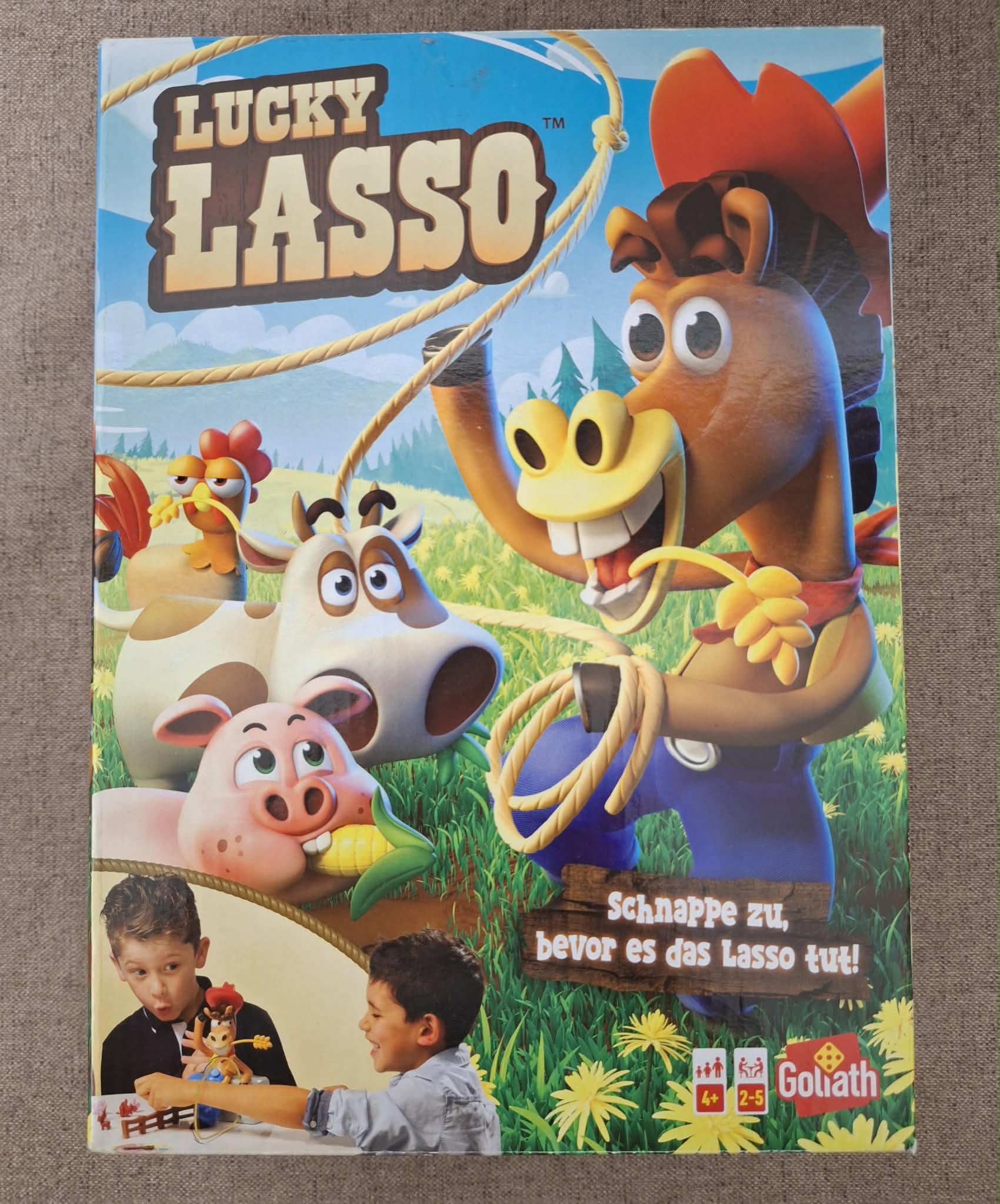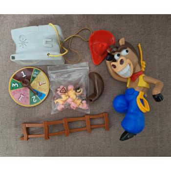 Hiánytalan ( Elemeket nem tartalmaz, az kell hozzá külön),jó állapotú,nyomtatott magyar nyelvű játékleírással. 4 éves kortól, 2-5 játékos részére.Ügyességi játék, a pörgő lasszó között átnyúlva kell állatokat gyűjteni, addig míg a lasszó el nem kapja a kezedet. A játék célja: Gyűjtsd össze a legtöbb állatot anélkül,hogy elkapnának!