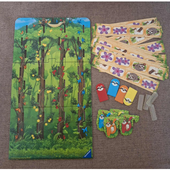 Hiánytalan,nagyon jó állapotú ,nyomtatott magyar nyelvű szabállyal.4 éves kortól,2-4 játékos részére.A lajhárok természetüknél fogva nem a leggyorsabbak:de a dzsungelben ,fent a fák tetején van egy új függőágy.Mindenki szeretne ott álmodozni-így négy kis lajhár versenyt rendez:mindenki cikkcakkban mászik fel a fájára,amilyen gyorsan csak lehet.Szerinted ki lesz az első aki feljut a csúcsra?