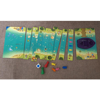 Hiánytalan, jó állapotú,nyomtatott magyar nyelvű játékleírással.3 éves kortól, 2-6 játékos részére.Kooperatív játék.A játékosok együtt próbálják megmenteni a halacskákat a horgászok elől. A kockadobás határozza meg,hogy a halakat vagy a horgászokat kell-e mozgatni.
