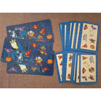 Hiánytalan,nagyon jó állapotú,magyar nyelvű játékleírással.5 éves kortól,2-4 játékos részére. Egy nagyszerű figyelemfejlesztő játék.A táblán 8 figura,de a kártyákon csak 7. Ki találja meg gyorsabban, hogy melyik figura hiányzik a kártyáról? Aki a legtöbb kártyát gyűjtötte az győz.