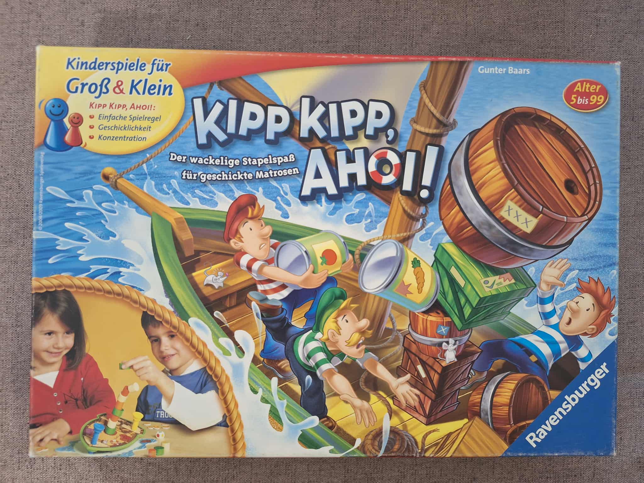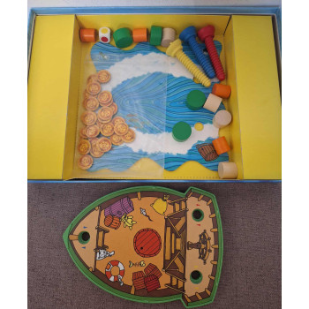 Hiánytalan, a dobozán látszik a használat de maga a játék jó állapotú. 5 éves kortól, 2-4 játékos részére.A szorgalmas matrózok hordókat pakolnak a fedélzetre, miközben a hajó a magas hullámokon himbálódzik. Minél magasabbra nő a hordótorony, annál nagyobb ügyességre van szükség. Csak így marad meg az egyensúly, és maradnak a hordók egymáson.