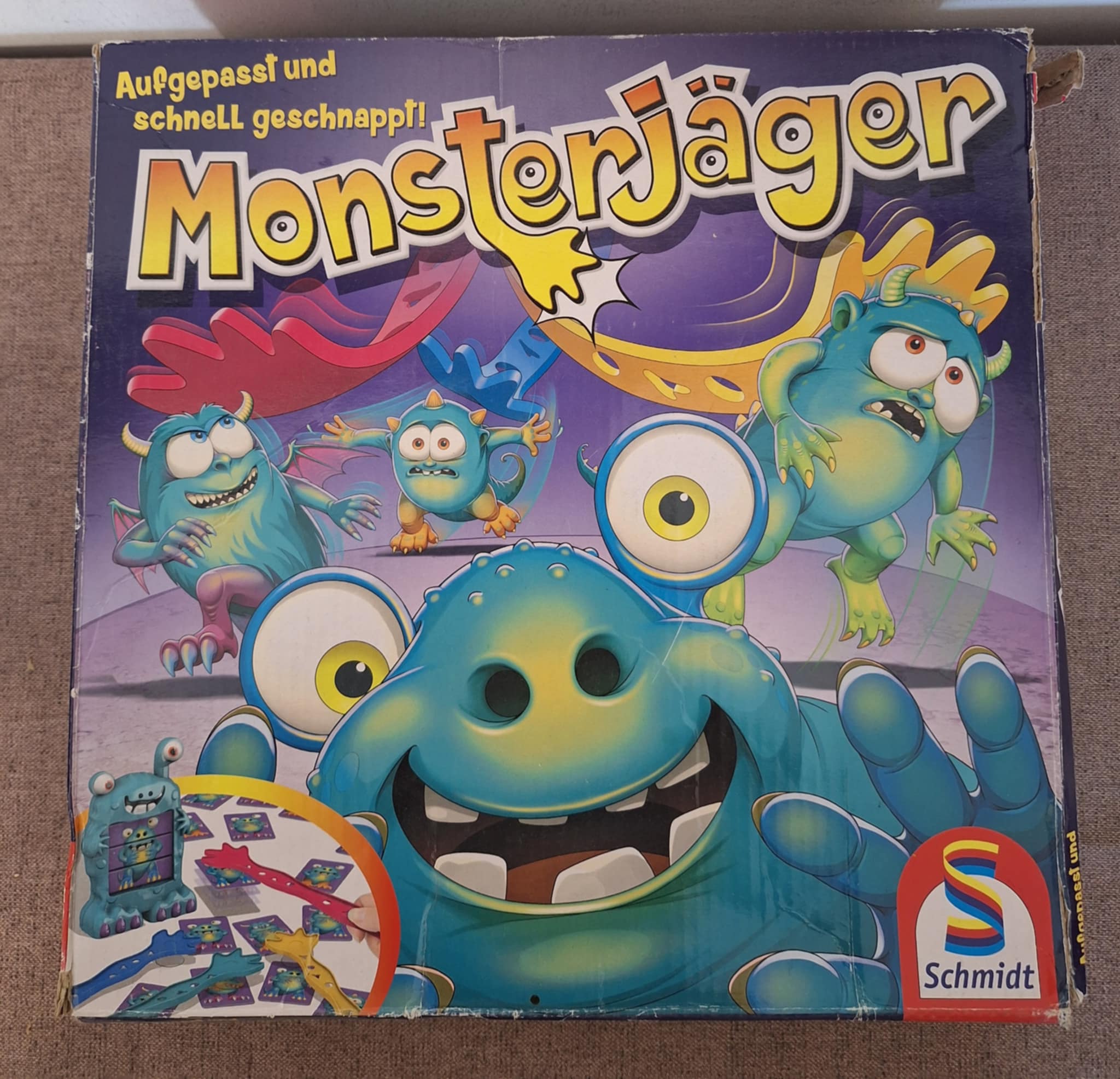 Hiánytalan,a doboza viseltes de maga a játék jó állapotú,nyomtatott magyar nyelvű játékleírással.5 éves kortól,2-4 játékos részére.Vigyázz,a szörnyek szabadlábon vannak!Csak ne hagyd,hogy megszökjenek!Bárki,aki szörnyet lát,gyorsan lecsap a szörnycsapkodójával.De nézd meg alaposan,mit mutat a szörnykeverő,a kis vadállatok eléggé hasonlóak.Ha elkaptál egy szörnyet ,ügyelj arra,hogy játékostársaid ne ragadják el a kapott szörnykártyát. Aki először elkap 5 szörnyet,megnyeri a szórakoztató szörnyvadászatot.A játék célja,hogy gyorsan megtaláld a szörnykeverő által mutatott szörnyeket,és te legyél az első,aki elkap 5 szörnykártyát a szörnycsapó segítségével.