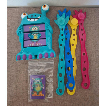 Hiánytalan,nagyon jó állapotú,nyomtatott magyar nyelvű játékleírással.5 éves kortól,2-4 játékos részére.Vigyázz,a szörnyek szabadlábon vannak!Csak ne hagyd,hogy megszökjenek!Bárki,aki szörnyet lát,gyorsan lecsap a szörnycsapkodójával.De nézd meg alaposan,mit mutat a szörnykeverő,a kis vadállatok eléggé hasonlóak.Ha elkaptál egy szörnyet ,ügyelj arra,hogy játékostársaid ne ragadják el a kapott szörnykártyát. Aki először elkap 5 szörnyet,megnyeri a szórakoztató szörnyvadászatot.A játék célja,hogy gyorsan megtaláld a szörnykeverő által mutatott szörnyeket,és te legyél az első,aki elkap 5 szörnykártyát a szörnycsapó segítségével.