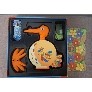 Hiánytalan,új állapotú,nyomtatott magyar nyelvű játékleírással.5 éves kortól,2-4 játékos részére.„Hello Nick!”, kiáltja Betty a méhecske, Kurt a bogár és a többi rovar. „Játszunk ma is fogócskát?A virágokon át az áglyukig?” „Semmi probléma, úgyis elkaplak titeket!”, válaszolta magabiztosan Nick, a színes madár. És kezdődik is! De az egész nem olyan egyszerű, mint ahogy azt Nick hitte. A kis rovarok ma ügyesen elrejtőztek a levelek alatt, így Nick hamarosan nem tudja, ki merre ugrál ide-oda virágtól virágra. Ki a leggyorsabb? Kit tud elkapni Nick, és melyik rovar jut el elsőként a faág lyukába?
