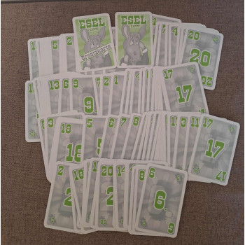 Hiánytalan,a dobozán nagyon kicsit látszik a használat de a kártyák új állapotúak,nyomtatott magyar nyelvű játékszabállyal. 6 éves kortól,2-8 játékos részére.Aki nem vigyáz az bolond! A játékosok felváltva játszanak ki kártyákat a lefelé fordított paklijukból,és letehetik azokat az ellenfelük mellé,vagy az asztal közepére.Az nyer,aki először szabadul meg az összes kártyájától. De légy óvatos! Ha a többi játékos hibát észlel,te leszel az új szamár,és kártyákat kell húznod.Izgalmas verseny veszi kezdetét,és csak a legnagyobb szamár marad életben.