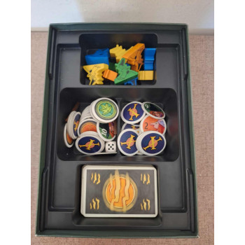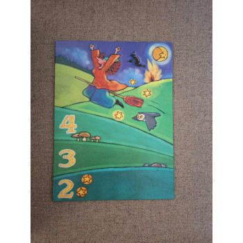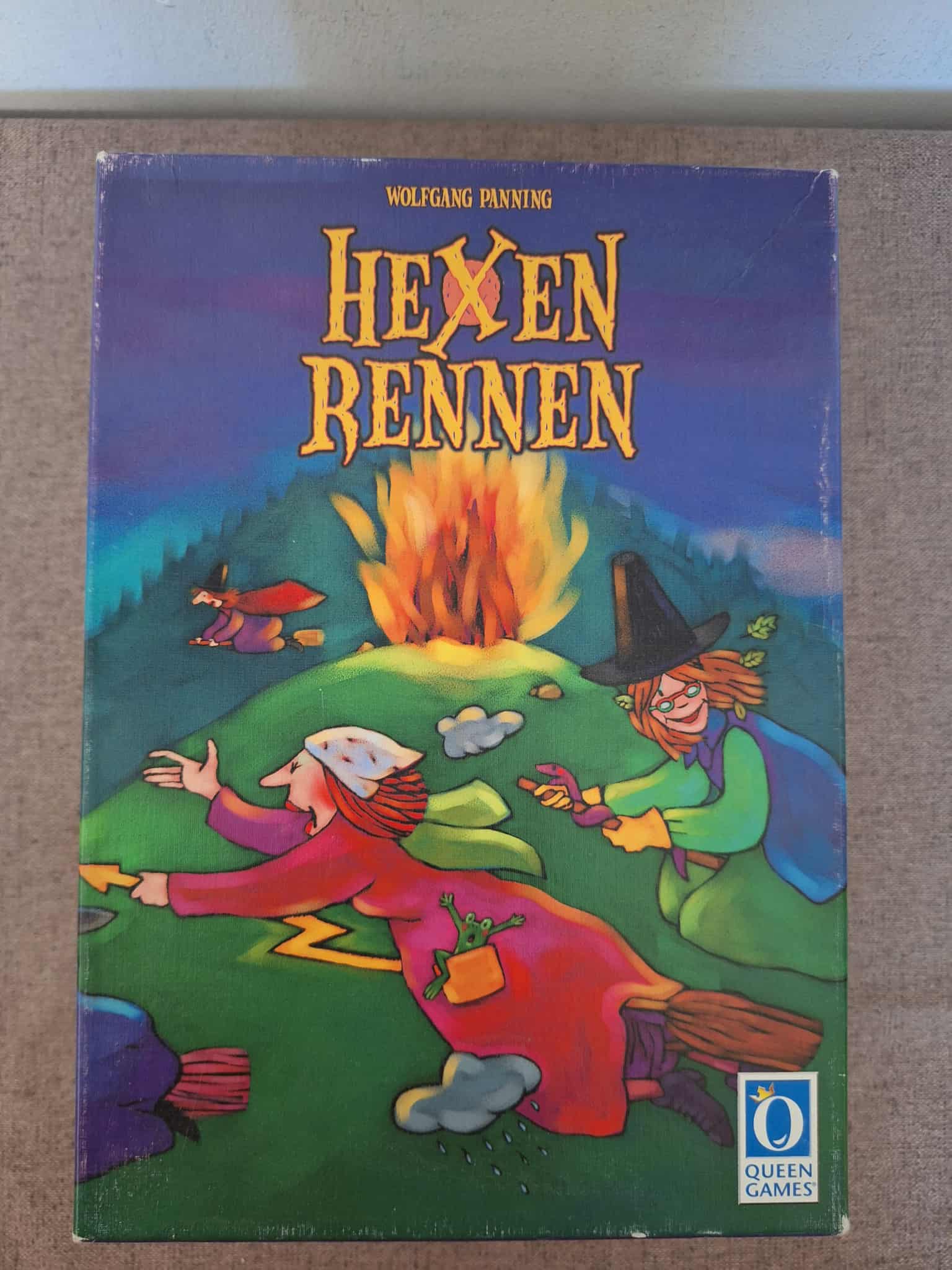 Hiánytalan,jó állapotú,nyomtatott magyar nyelvű játékszabállyal.7 éves kortól,2-4 játékos részére.A nyári napforduló éjszakáján négy boszorkánycsalád: vihar,jég,köd és az erdő tagjai versengenek egymással. A verseny több fordulóból áll,melyben minden családnak azonosak a lapjaik,de a boszorkányoknak fordulónként más és más úton kell végigmenniük. A boszorkánycsaládok mágikus korongjait,melyek a játékfelületet alkotják,a játékosok fordulónként újra megkeverik,és újra lehelyezik.A lehelyezett mágikus korongokat a játékosok két seprűnyéllel három egyforma szakaszra osztják.A játékosok célja,lehetőleg az összes boszorkánnyal minél gyorsabban a három szakaszt teljesíteni ,és elsőként a célba érni .A boszorkányok gyorsabban célba jutnak,ha sikerül a saját mágikus korongjaikon végiglépniük.De vigyázat! A mágikus korongok varázserővel bírnak,visszaléptetik azt a boszorkányt,aki nem a saját mágikus korongjára lép.