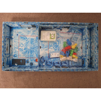 Hiánytalan, a doboztető sarka ragasztott,de a játékhoz nem kell, csak a doboz alja,ezt leszámítva a játék jó állapotú, magyar nyelvű játékszabállyal.6 éves kortól,2-4 játékos részére.Micsoda kis bajkeverők! 3 kicsi pingvin úgy gondolta, hogy az iskolai ebédszünet előtt ellógnak és annyi halat esznek meg a többiek elől, amennyi csak beléjük fér! De várjunk csak egy kicsit! Az iskolai ügyeletes is a nyomukban van, őt aztán nehéz lesz kicselezni! Ha hozzájuk ér akkor büntetés jár, elveszi az iskolai igazolványt! Így csak egy dolgot lehet tenni: Futáááás!