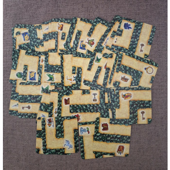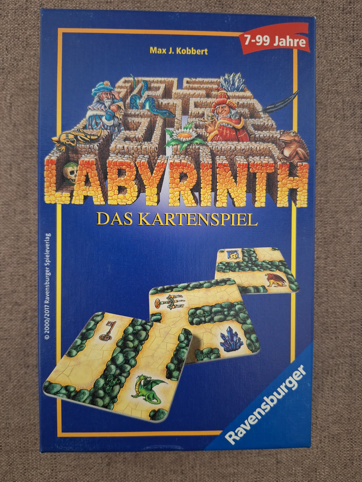 Hiánytalan,jó állapotú,nyomtatott magyar nyelvű szabállyal.7 éves kortól,2-6 játékos részére.A játék célja: A kártyák egymás mellé helyezésével olyan labirintust hozunk létre ,amely a játék folyamán állandóan változik.A cél az,hogy a kártyák ügyes elhelyezésével úgy alakítsunk ki utakat a labirintusban,hogy azok két azonos kincset (kincsesládát,sárkányt ,kísértetet,stb.) egymással összekössenek.Eközben kártyákat gyűjtünk.Akinek a játék végén a legtöbb kártyája van,az nyert.