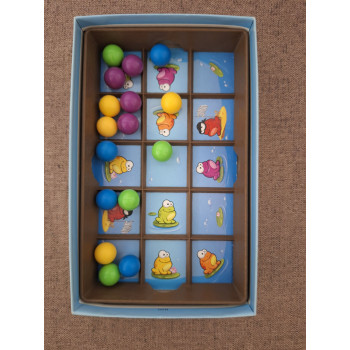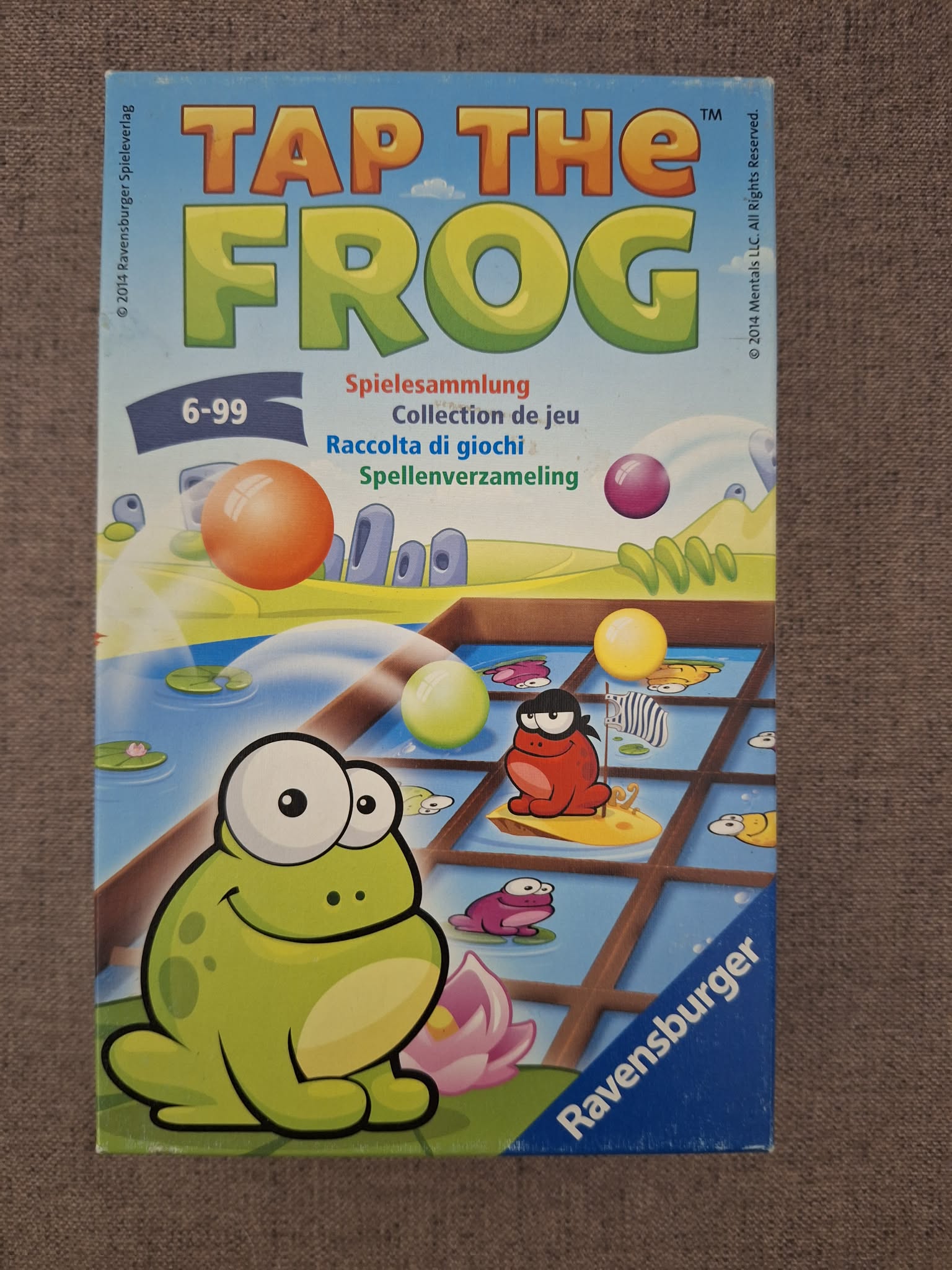 Hiánytalan,jó állapotú,nyomtatott magyar nyelvű játékleírással. 6 éves kortól, 1-4 játékos részére.A pimasz békák ma vízilabdáznak, és ti dobáljátok nekik a színes labdákat. De vigyázzatok: máris egy labda a vízben landolt, vagy akár a kalóz béka is elkaphatja! Aki ügyesen dobja a labdákat a békáknak, az szerzi a legtöbb pontot.