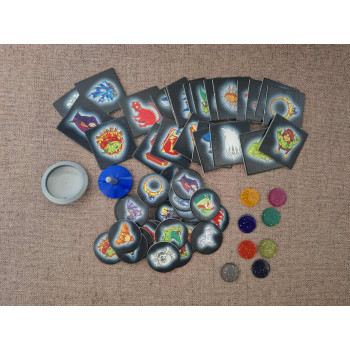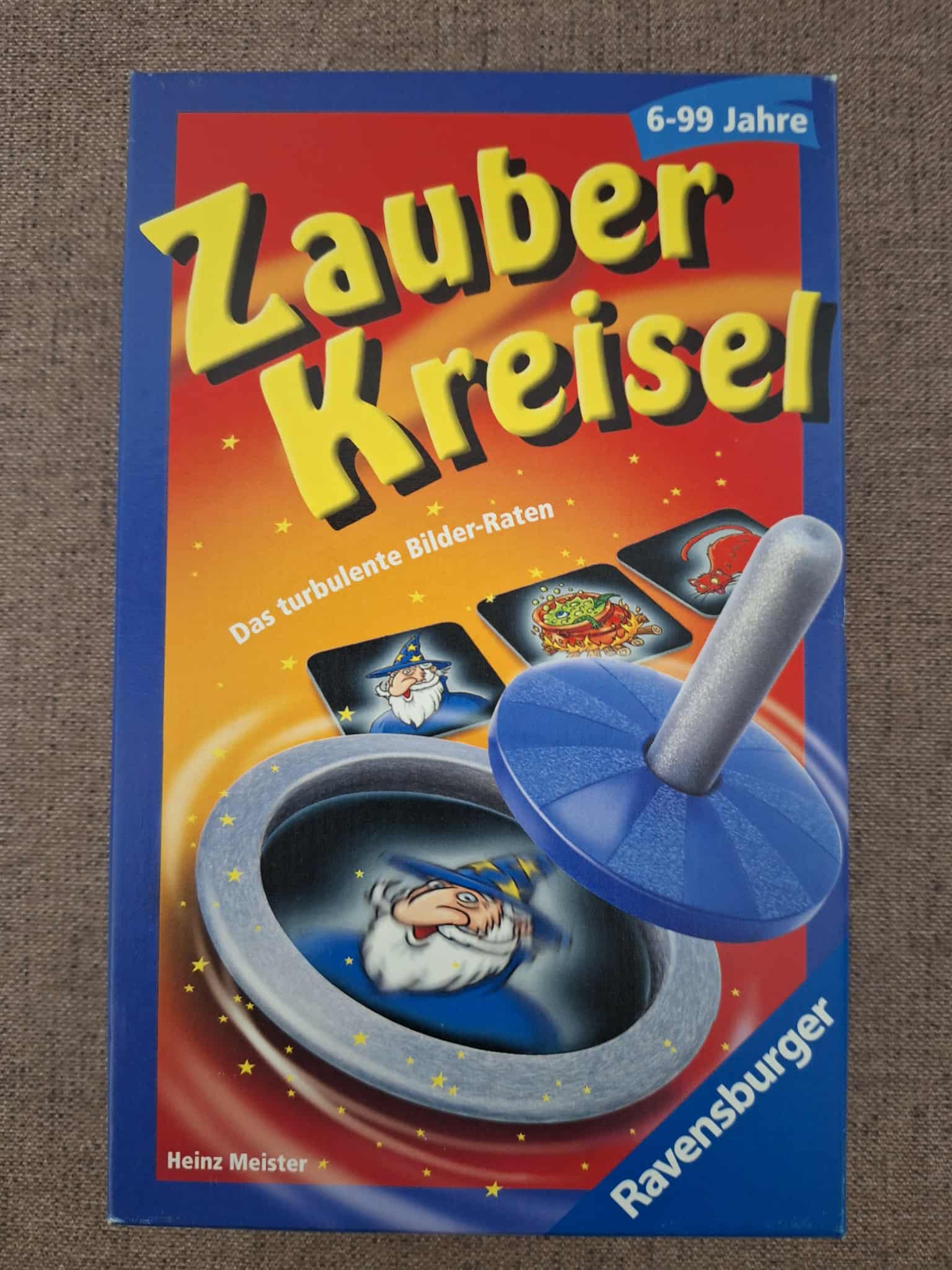 Hiánytalan,jó állapotú,nyomtatott magyar nyelvű játékleírással.6 éves kortól,2-8 játékos részére.Izgalmas ,pörgettyűs reakciójáték.A játék célja: figyelni és gyorsan reagálni.Melyik kép pörög a varázspörgettyűben?Az a játékos ,akinek sikerül a leggyorsabban megtalálni a négyzet alakú kártyák közül a megfelelőt,megkaphatja a kerek kártyát,és a négyzet alakú kártyát is.Akinek a játék végére a legtöbb kártyája lesz ,az győz.