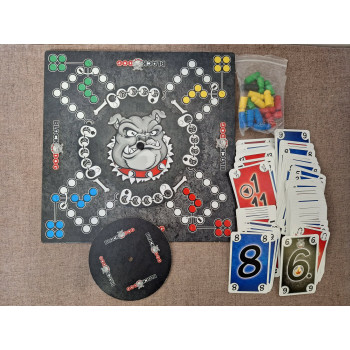 Hiánytalan,nagyon jó állapotú,nyomtatott magyar nyelvű játékleírással. 8 éves kortól, 2-4 játékos részére.Ki fél a Fekete Kutyától? A játék célja:Két játékos alkot egy csapatot. Minden játékos megpróbálja a saját 4 játékfiguráját a lehető leggyorsabban eljuttatni a rajtból a célba. A játékfigurákat kártyák kijátszásával lehet mozgatni.Egyedül nem lehet nyerni.Ha egy játékosnak minden figurája célba ért, akkor segít a csapattársának, hogy az ő figurái is célba érjenek. Csak akkor nyer egy csapat, ha mind a 8 figura célba ért. A játék során a csapattársak nem beszélhetnek a kezükben lévő kártyákról vagy a játék lépéseiről.