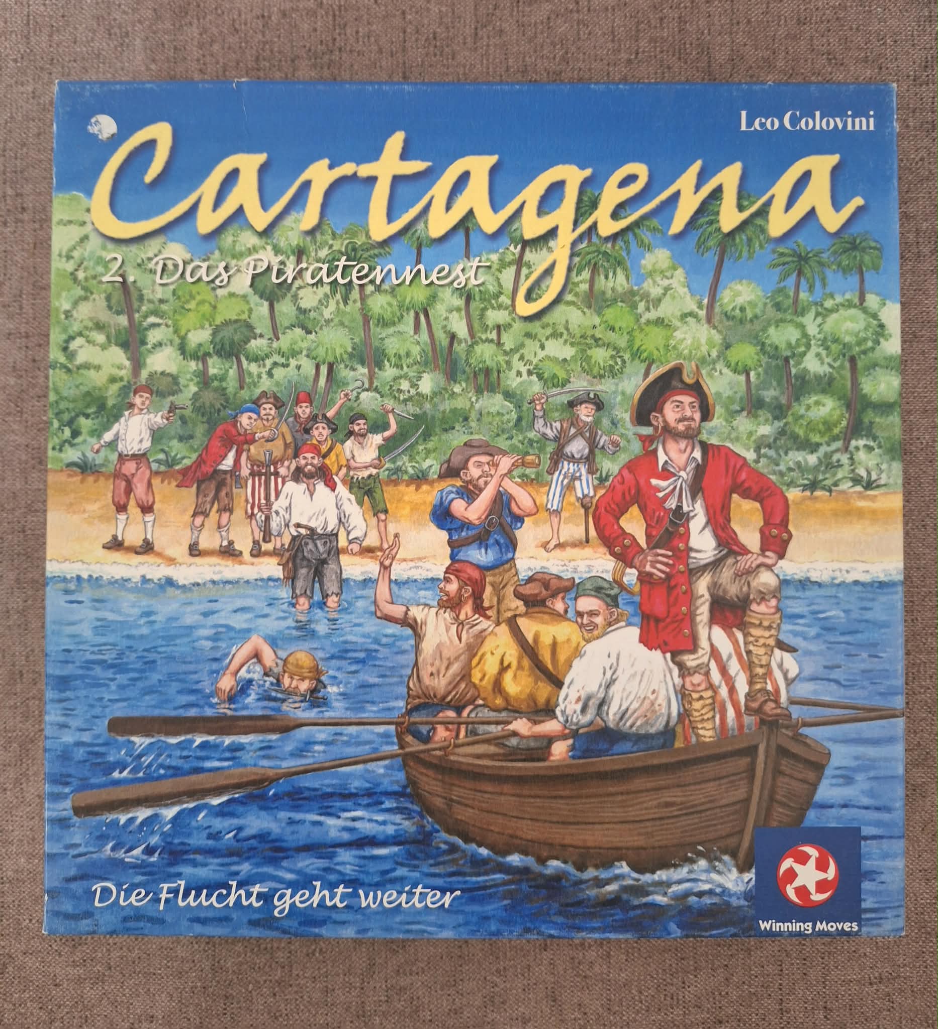 Hiánytalan ( a zászló hiányzott, gyártottunk bele másikat, a játékot nem befolyásolja), jó állapotú, nyomtatott magyar nyelvű játékszabállyal.A Cartagena első részében a kalózok egy titkos alagúton át kiszöktek az erődből,ám még hosszú út választja el őket a biztonságtól.Csak akkor lélegezhetnek fel igazán,ha elérnek a kalózfészekbe, Tortuga szigetére. Minden játékos egy csapat kalózt vezet a kalózfészek felé. A kalózoknak át kell vágniuk magukat a vad dzsungelen,majd a tengeren keresztül át kell jutniuk Tortuga szigetére. Természetesen a rivális kalózcsapatok is akadályozzák egymást,habár olykor rákényszerülnek a többiek segítségére.Az első játékos,aki összes kalózát beviszi Tortugába,felvonhatja a kalózzászlót,megnyerve így a játékot.