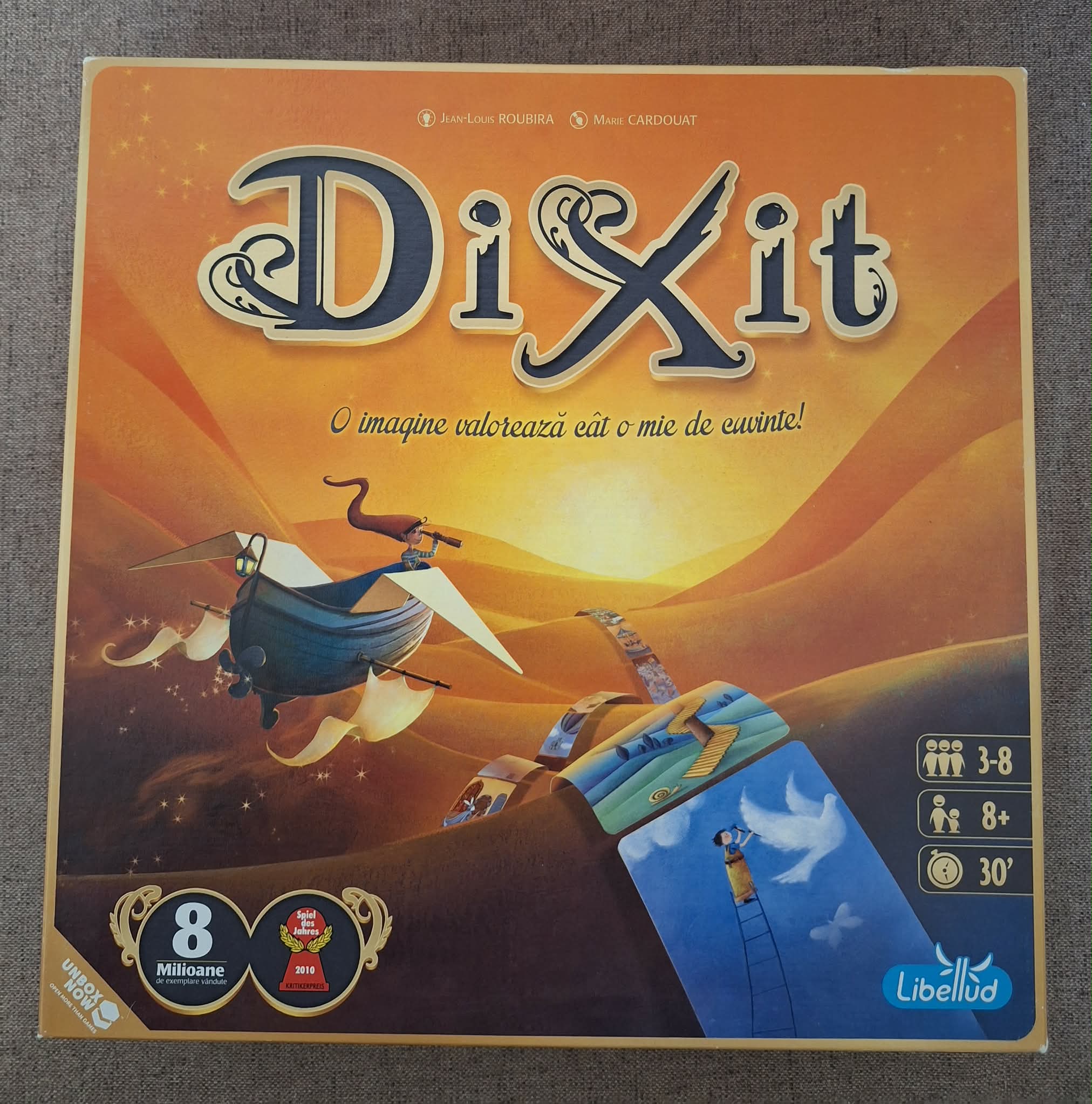 Hiánytalan,jó állapotú,nyomtatott magyar nyelvű szabállyal.8 éves kortól,3-6 játékos részére.A fantázia és csodás festmények partijátéka. A Dixit világszerte népszerű, Év játéka díjas családi partijáték. A játékosok gyönyörű festménykártyákat kapnak, a „mesélő” kiválaszt egyet a kezéből, amelyről mond egy utalást: egy szót vagy akár egy egész történetet. Majd a többiek is választanak a sajátjaik közül az utalás alapján. Összekeverik a kártyákat, és a játékosok megtippelik: vajon melyik lehetett a mesélőé? Számlát adok róla .Még több termék a weboldalamon: https://jatekhalaszat.hu/ Személyesen előre egyeztetett időpontban és helyen a következő helyeken vehető át Xv kerület, Kerepes, Kistarcsa vagy tudom küldeni packetával,foxpostba, mpl automatába, postapontra vagy futárral.