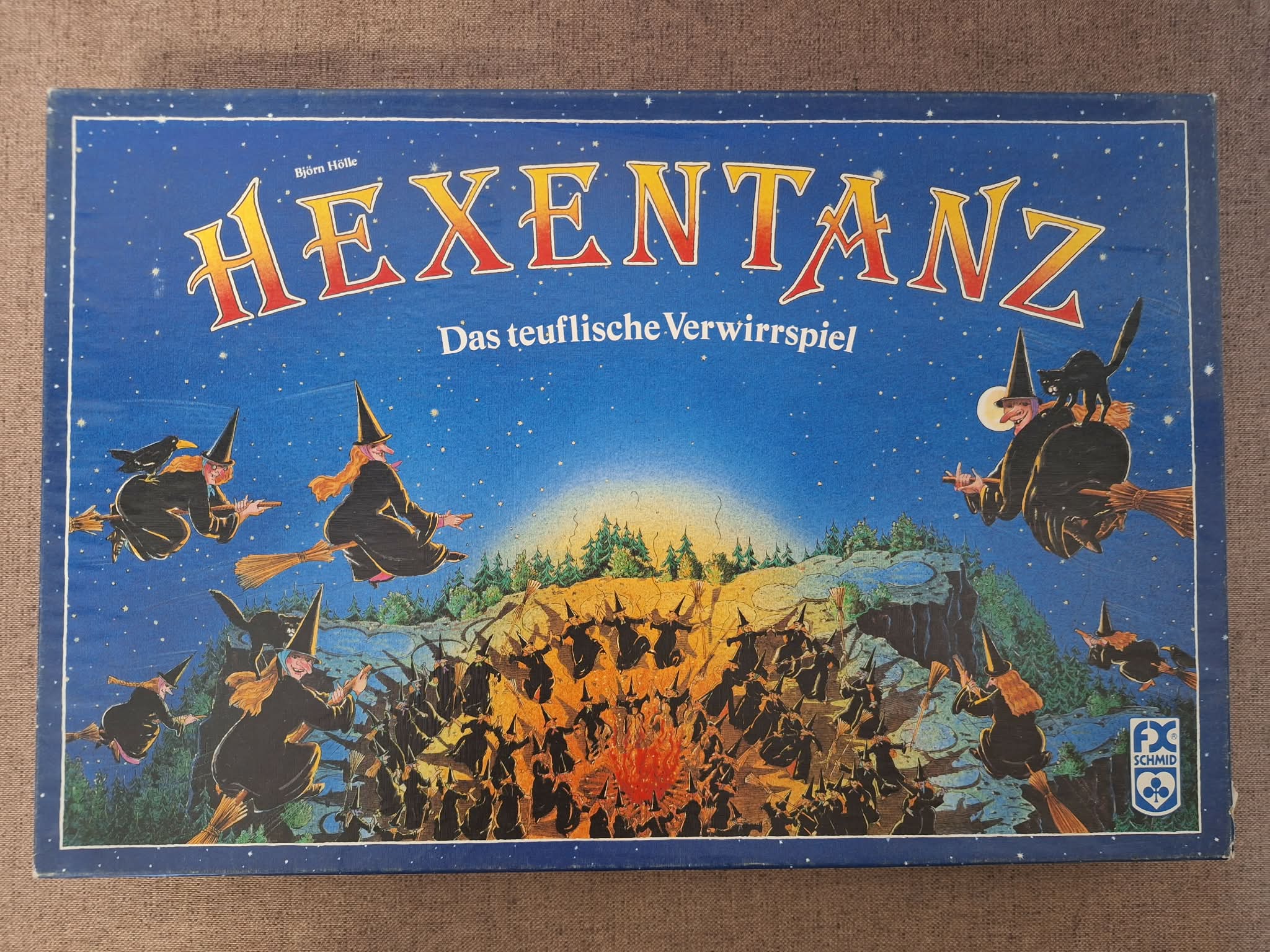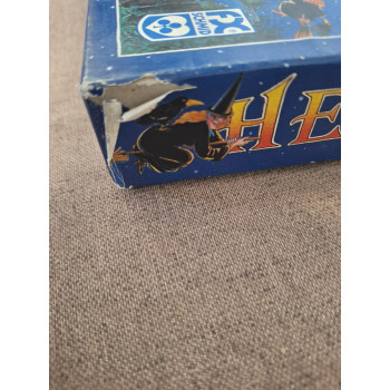 Hiánytalan,a doboza viseltes,de maga a játék jó állapotú,nyomtatott magyar nyelvű szabállyal.8 éves kortól,3-6 játékos részére.A boszorkányéjszakán összegyűlnek a boszorkányok egy nagy, közös táncra. Hogy minél izgalmasabb legyen a buli, mindannyian fekete süveget viselnek. Ahogy keringenek a tűz körül, végül már senki sem tudja, melyik süveg alatt milyen boszi rejtőzik. Mire azonban a nap felkel, minden boszi megtalálja a saját helyét!A kockadobásnak megfelelően kell a bábukkal lépni a mezőn. Célba kell érni minden saját színű boszorkánnyal. Igen ám, de a kalap alatt nem látszik ,hogy ki melyik bábuval lép.Itt bizony lesz egy kis keveredés.Aki valamennyi saját figurájával egyszer körbement a pályán, és elsőként ér a célmezőkre, az győz.
