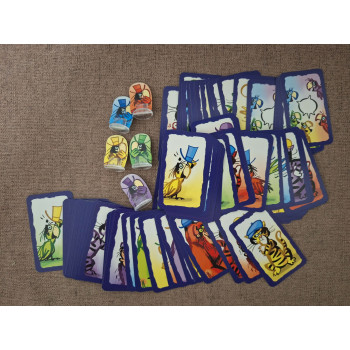 Hiánytalan,jó állapotú,nyomtatott magyar nyelvű játékszabállyal. 8 éves kortól, 2-6 játékos részére.A Plapparagei egy gyors tempójú párosítós játék,ahol meg kell mondanod a megfelelő színt vagy állatot,kiáltanod kell, hogy Plapparagei!, vagy egyszerűen csak el kell ismételned amit előtted mondtak.De mindig tudod mit kell mondanod?A játék célja,hogy elsőként szabadulj meg az összes kártyádtól.Ezt a legjobban úgy érheted el,ha elkerülöd a hibákat.Ha hibázol,vagy túl sokáig habozol,akkor az asztal közepéről kell elvenned kártyákat.Az a játékos nyer,aki először szabadul meg az összes kártyájától.