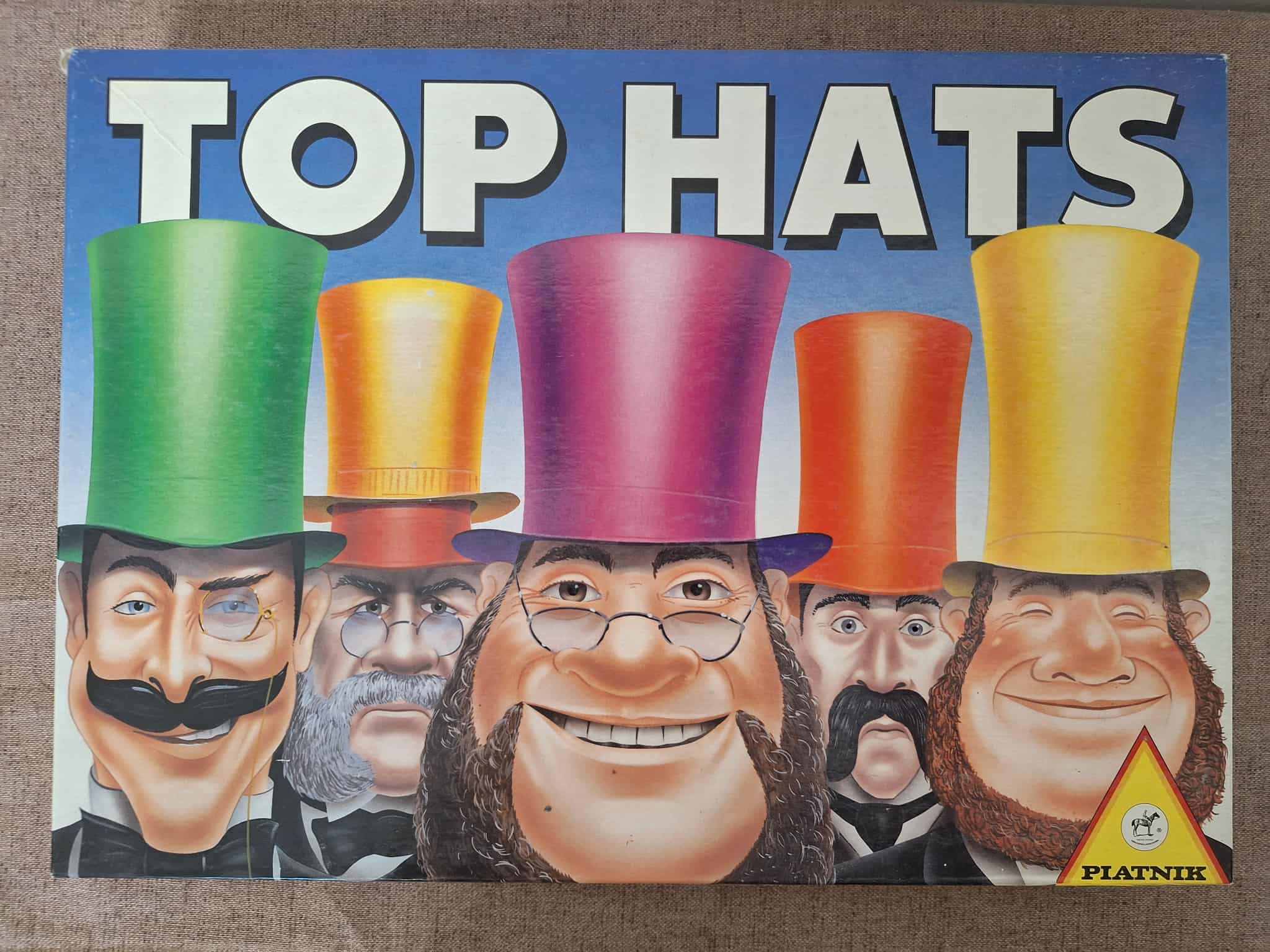 Hiánytalan, a dobozán látszik kicsit a használat de maga a játék jó állapotú,nyomtatott magyar nyelvű játékleírással. 8 éves kortól,2-3 játékos részére. A Top Hats egy taktikai blöffölős játék. A cilinderkalapok egymásra rakva kerülnek fel.A legfelső kalap határozza meg a tulajdonost.Ha átugrunk egy ellenfél kupacot,akkor a legfelső kalap eltávolításra kerül. A játék célja: Ellenfelek cilinderkalapjainak eltávolítása,amíg csak saját kalapok maradnak a táblán.