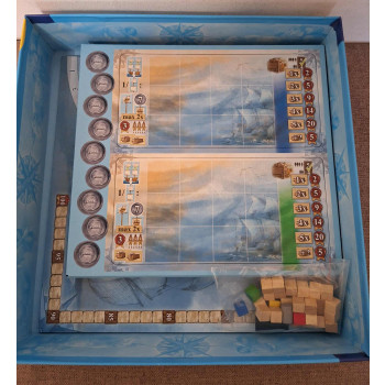 Belül teljesen új bontatlan, nyomtatott magyar nyelvű játékszabállyal. 12 éves kortól,2-4 játékos részére.A játékosok olyan vállalkozók bőrébe bújnak,akik a hajóépítésben,a kereskedelemben és a szállításban tevékenykednek.Így a játékos hajógyár-tulajdonos,kereskedő és hajótulajdonos is egy személyben. Hajógyár-tulajdonosként különböző méretű hajókat épít.Kereskedőként árukat vásárol,amiket hajótulajdonosként az elkészült hajókkal kell majd elszállítania.Az elkészült hajók és az elszállított áruk győzelmi pontokat érnek.Aki az 5 forduló (két játékos esetén 4 forduló) során a legtöbb győzelmi pontot szerzi,az nyeri a játékot.