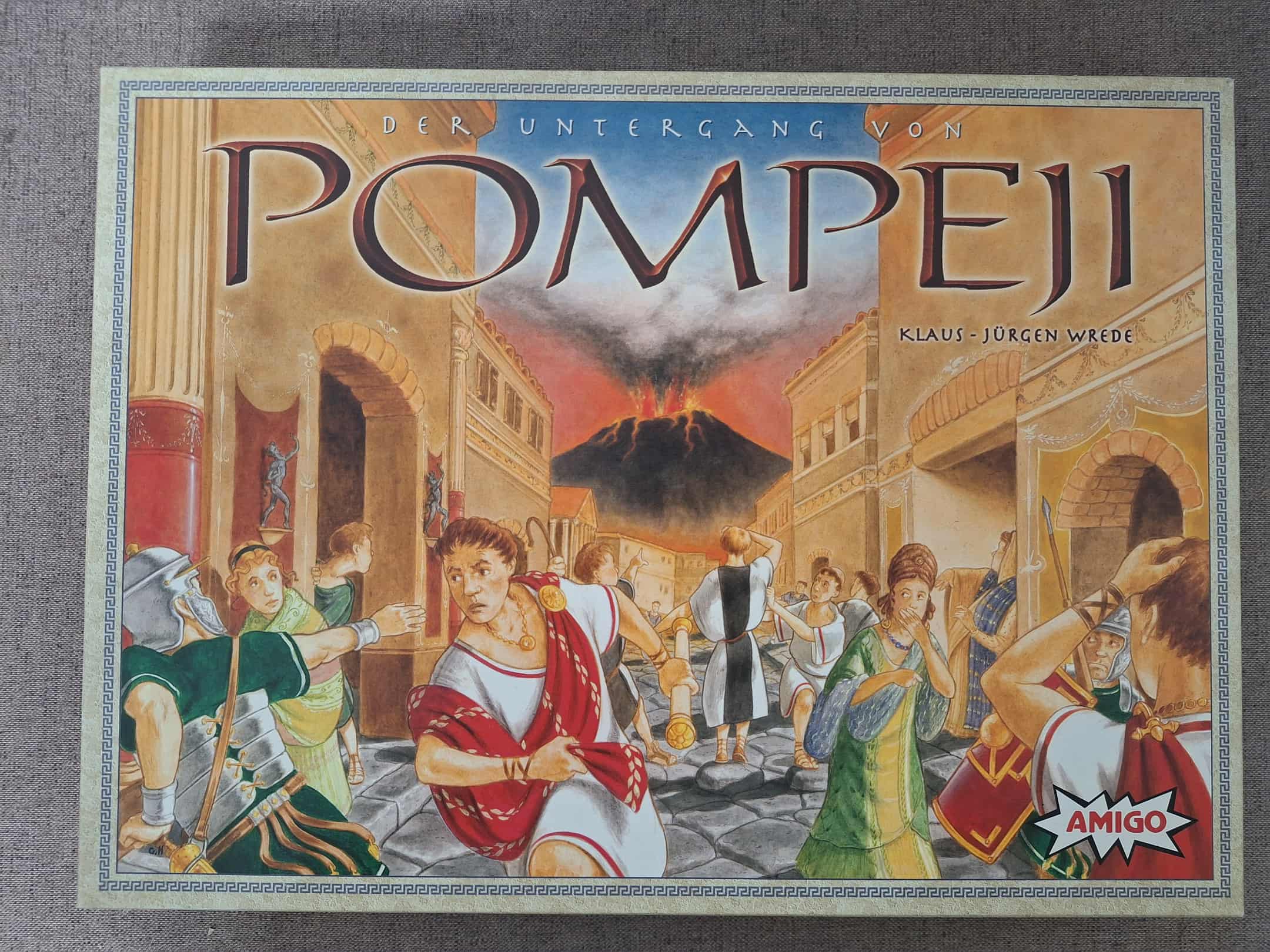 Hiánytalan,nagyon jó állapotú,nyomtatott magyar nyelvű játékszabállyal. 10 éves kortól, 2-4 játékos részére.A játék két fázisból áll. Az első fázisban a játékosok a lehető legtöbb saját polgárt helyezik el a városban a Pompeji kártyák segítségével. Így a játékos, aki kijátszik egy 3-as kártyát, ráteheti egy polgárát a 3-as épületre.Amikor másodjára jön elő az i. u. 79-kártya, a Vezúv kitör, és megkezdődik a második fázis. Ekkor a játékosok a lehető legtöbb polgárukat igyekszenek kimenekíteni a kapukon keresztül, mielőtt még Pompejit teljesen elborítaná a láva. A játékot az a játékos nyeri meg, aki a játék végéig a legtöbb polgárát menti meg.