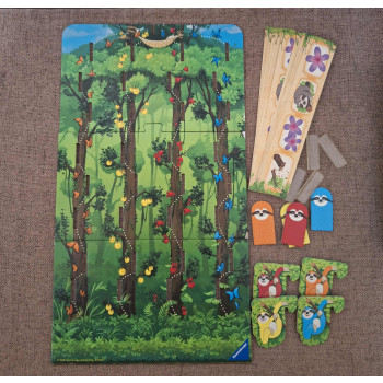 Hiánytalan,a doboza kicsit kopott de maga a játék jó állapotú ,nyomtatott magyar nyelvű szabállyal.4 éves kortól,2-4 játékos részére.A lajhárok természetüknél fogva nem a leggyorsabbak:de a dzsungelben ,fent a fák tetején van egy új függőágy.Mindenki szeretne ott álmodozni-így négy kis lajhár versenyt rendez:mindenki cikkcakkban mászik fel a fájára,amilyen gyorsan csak lehet.Szerinted ki lesz az első aki feljut a csúcsra?