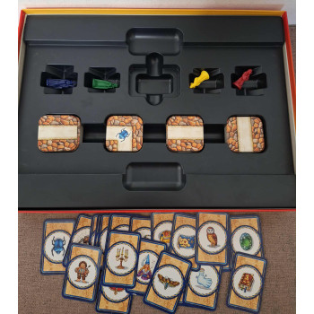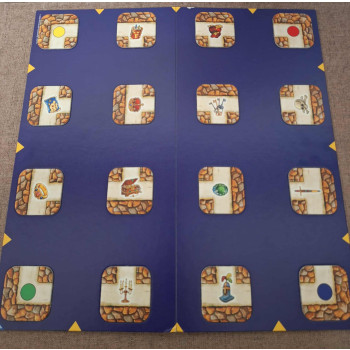 Hiánytalan,a kártyákon látszik kicsit a használat de amúgy jó állapotú,nyomtatott magyar nyelvű játékleírással.7 éves kortól,2-4 játékos részére.Told el az útvesztő falát,hogy megleld az út vonalát,mely a kincsekhez vezet!A játék célja: A játékosok egy elátkozott labirintust indulnak felfedezni.Minden játékos igyekszik a labirintus járatainak ügyes eltolásával a reá váró titokzatos tárgyakhoz és élőlényekhez eljutni.Aki elsőként lebbenti fel a fátylat mindahányról,és a kiindulópontjára sikeresen visszaérkezik,az a győztes.