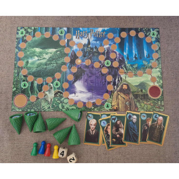 Hiánytalan, jó állapotú,nyomtatott magyar nyelvű szabállyal.6 éves kortól,2-4játékos részére.Néhány varázslatos vadállat rejtőzik a tiltott erdőben.Mágikus erőt érzel és be mersz lépni a tiltott erdőbe? Igen? Akkor segíts Harrynek,Hermionénak,Ronnak,Draconak,Hagridnak és Voldemort nagyúrnak megtalálni a vadállatokat,és a lehető leghamarabb elhozni őket Hagrid kunyhójába.