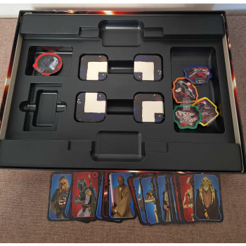 Hiánytalan,jó állapotú,nyomtatott magyar nyelvű szabállyal.7 éves kortól,2-4 játékos részére.Luke Skywalker,Yoda mester,R2-D2,és a Star Wars filmek sok más jól ismert karaktere elbújt a galaktikus labirintusban,és arra várnak,hogy megtaláld őket.Használd űrhajóidat,hogy megkeresd őket.Csak azok jutnak el a Jedi -lovagokhoz,a Sith-Lordokhoz ,a droidokhoz és a birodalom többi lakójához,akik ügyesen mozgatják a galaxist.Az erő legyen veled! A játék célja,hogy elsőként találd meg az összes kártyán szereplő figurát és visszatérj a kezdőmezőre. A labirintus mozgatásával el kell érniük a játékosoknak a kártyájukon szereplő motívumokat .Aki először találja meg az összeset,és visszatér az űrhajójával a kiindulási mezőre az győz. Ha már nagyon rutinosak vagytok,bevethetitek a Halálcsillag figurát is, ami eléggé megvariálja a játékot.