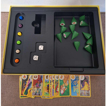 Hiánytalan, új állapotú,nyomtatott magyar nyelvű szabállyal.6 éves kortól,2-6 játékos részére.A játékosok útnak indulnak Meseország erdejében,hogy megkeressék azokat a tárgyakat,amelyekre a király vágyik,majd a kastélyba sietnek,hogy tudassák vele hol találhatóak.Aki először talál meg három tárgyat az győz.