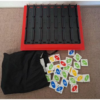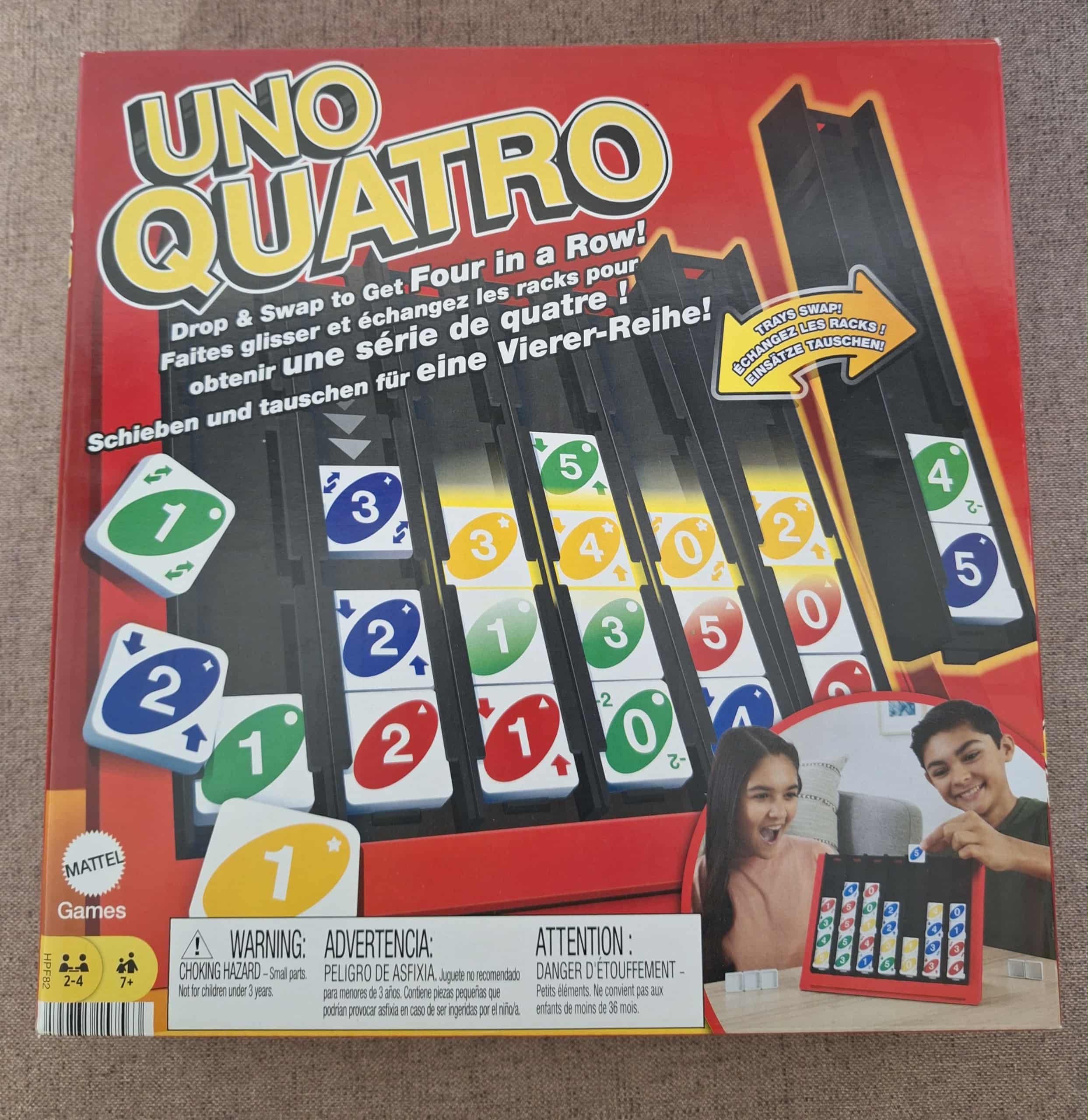 Hiánytalan,nagyon jó állapotú,magyar nyelvű játékszabállyal. 7 éves kortól, 2-4 játékos részére.A játék célja: Legyél az első játékos,akinek sikerül 4 (szín vagy szám szerint) egyező lapkát kiraknia keresztben,lefelé vagy átlós irányban!