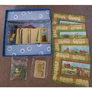 Hiánytalan,a doboza kicsit kopott de belül új állapotú,nyomtatott magyar nyelvű játékszabállyal. 8 éves kortól,2-5 játékos részére.A játék célja:A játékosok kártyáik ügyes lerakásával és kártyasorok maguknak követelésével szerezhetnek pontokat.Az győz,akinek a játék végén a legtöbb pontja van.