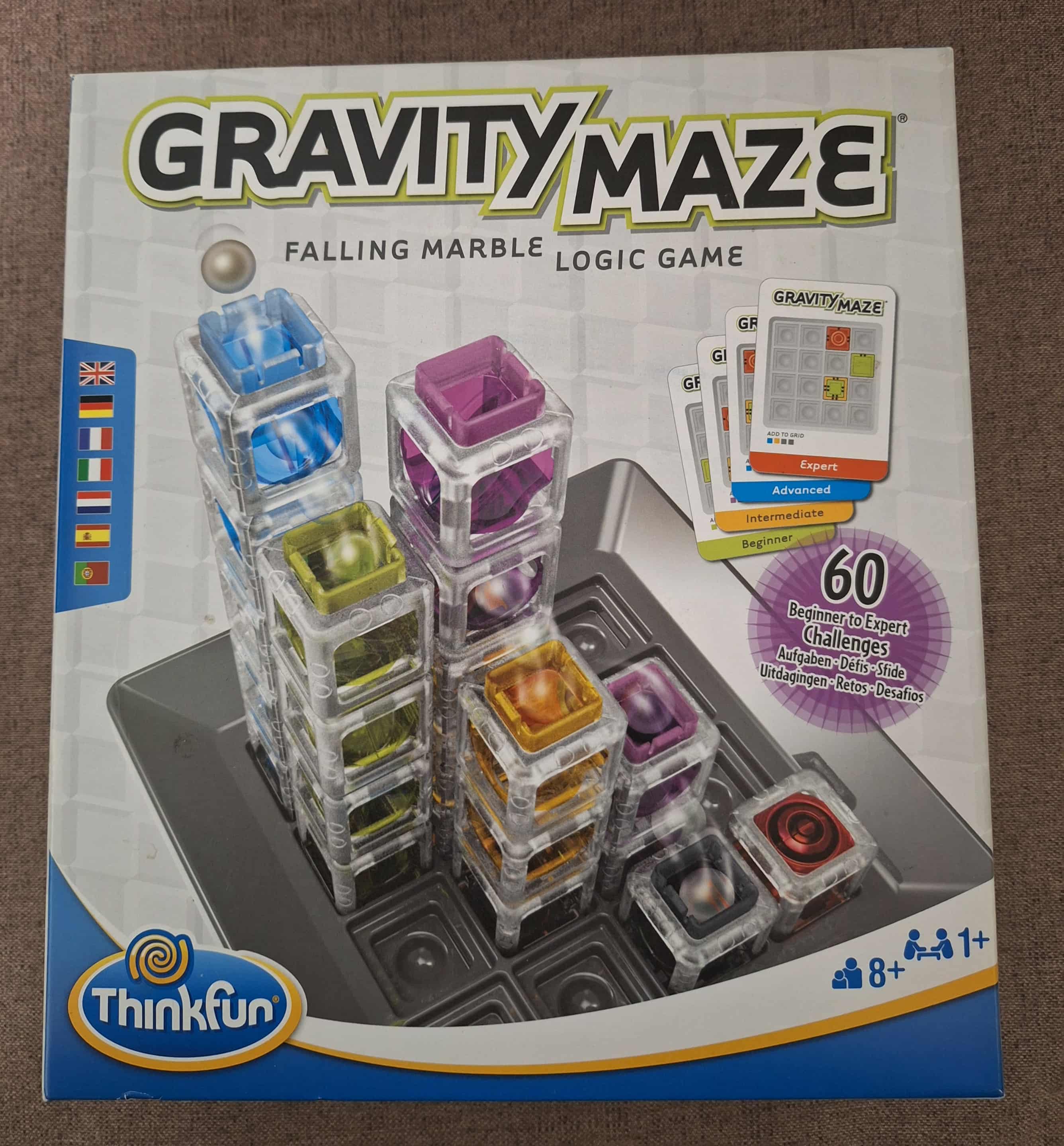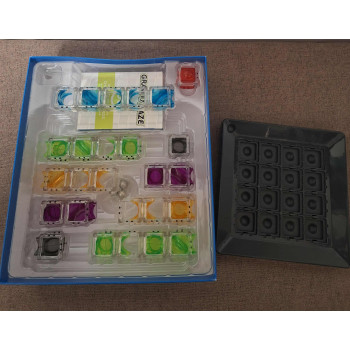 Hiánytalan,nagyon jó állapotú,nyomtatott magyar nyelvű játékleírással.8 éves kortól,1+ játékos részére. Thinkfun Gravity Maze játékban a logikánkra és a gravitációra kell hagyatkoz-nunk. A gravitáció elvén alapuló golyóvezető játék a vizuális érzékelést és a logi-kus gondolkzást fejleszti egyre nehezedő feladványaival. A feladványok során a színes, átlátszó tornyokat olyan módon kell felépíteni a játéktérben, hogy a kis fémgolyó könnyedén eljusson a céltoronyig. A 60 egyre nehezedő feladvány meg-oldásával rengeteg kreatív, építési és alkotói élményben lesz részünk. Miután az összes feladványt megoldottuk, engedjük szabadjára fantáziánkat és hozzunk létre saját toronykombinációkat! A Gravity Maze rendkívül látványos és izgalmas logikai játék, amit játszhatunk társasággal vagy akár egyedül is.
