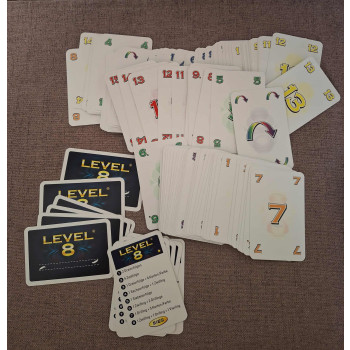 Hiánytalan, a kártyák új állapotúak,nyomtatott magyar nyelvű játékleírással. 8 éves kortól,2-6 játékos részére.A játék célja: minden játékos megpróbálja a lehető leggyorsabban összegyűjteni és lerakni a 8 szintjéhez szükséges kártyakombinációkat,több izgalmas körben.Aki ezt előbb megteszi az nyer.