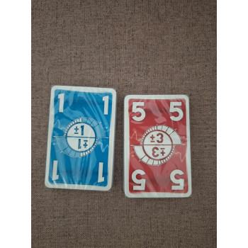 Belül teljesen új, a kártyák még bontatlan csomagolásban,nyomtatott magyar nyelvű játékleírással.8 éves kortól,2-4 játékos részére.Minden játékos egyszerre játszik. Mindenki megpróbál megszabadulni a kártyáitól az asztal közepén lévő dobóhalmon. A kupac legfelső lapja határozza meg, hogy melyik kártya kerülhet a következő helyre. Mindig két lehetőség van:A kártya értéke és a kártyán lévő +/- szám vagy összeadódik, vagy kivonódik egymásból. Az nyer, akinek először fogynak el a kártyái.